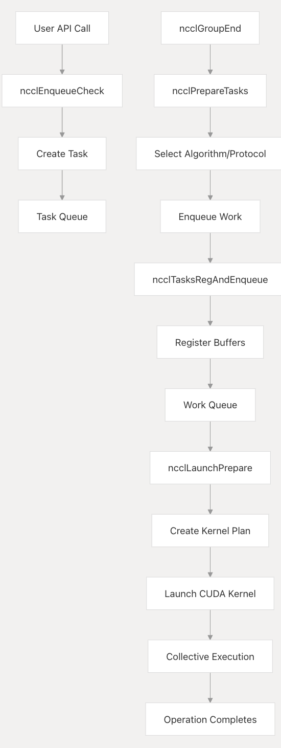 ncclGroupEndInternal()       // 如果 depth==1,这里触发实际执行